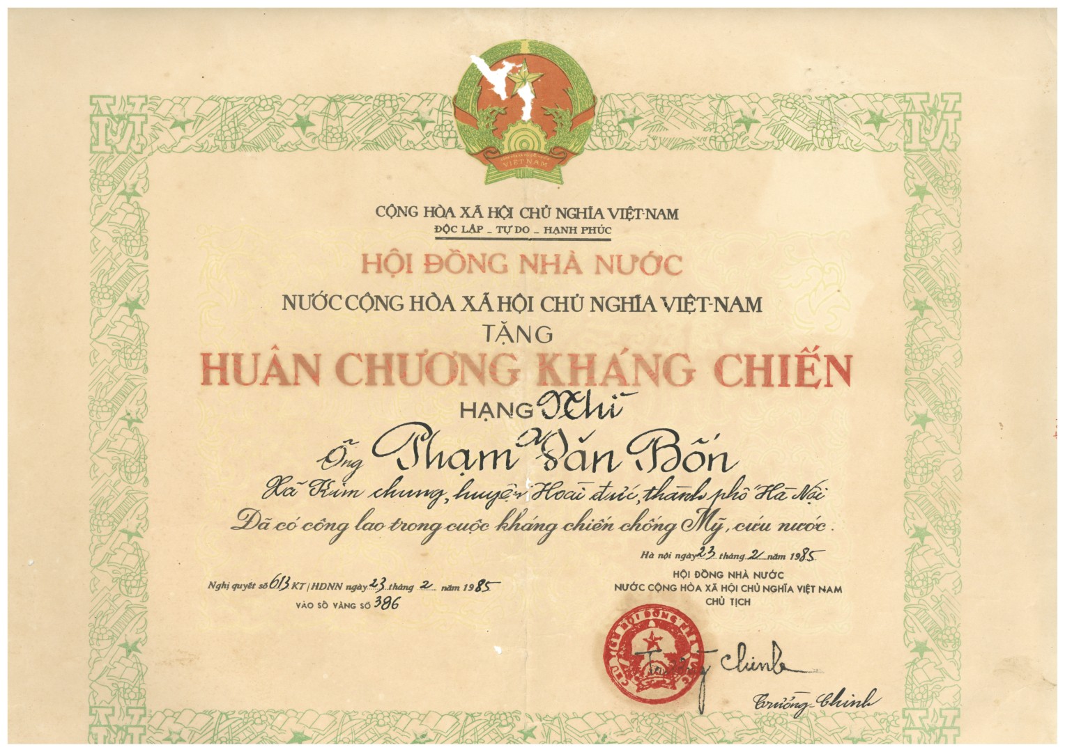 - Người đại diện gia đình: Phạm Quốc Khánh