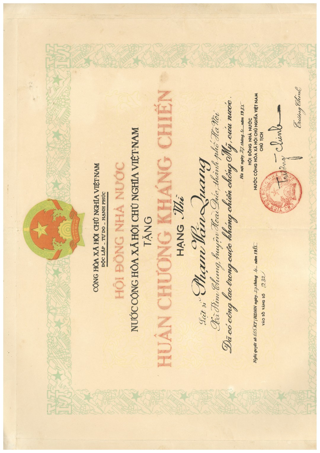 - Người đại diện gia đình: Phạm Quốc Khánh