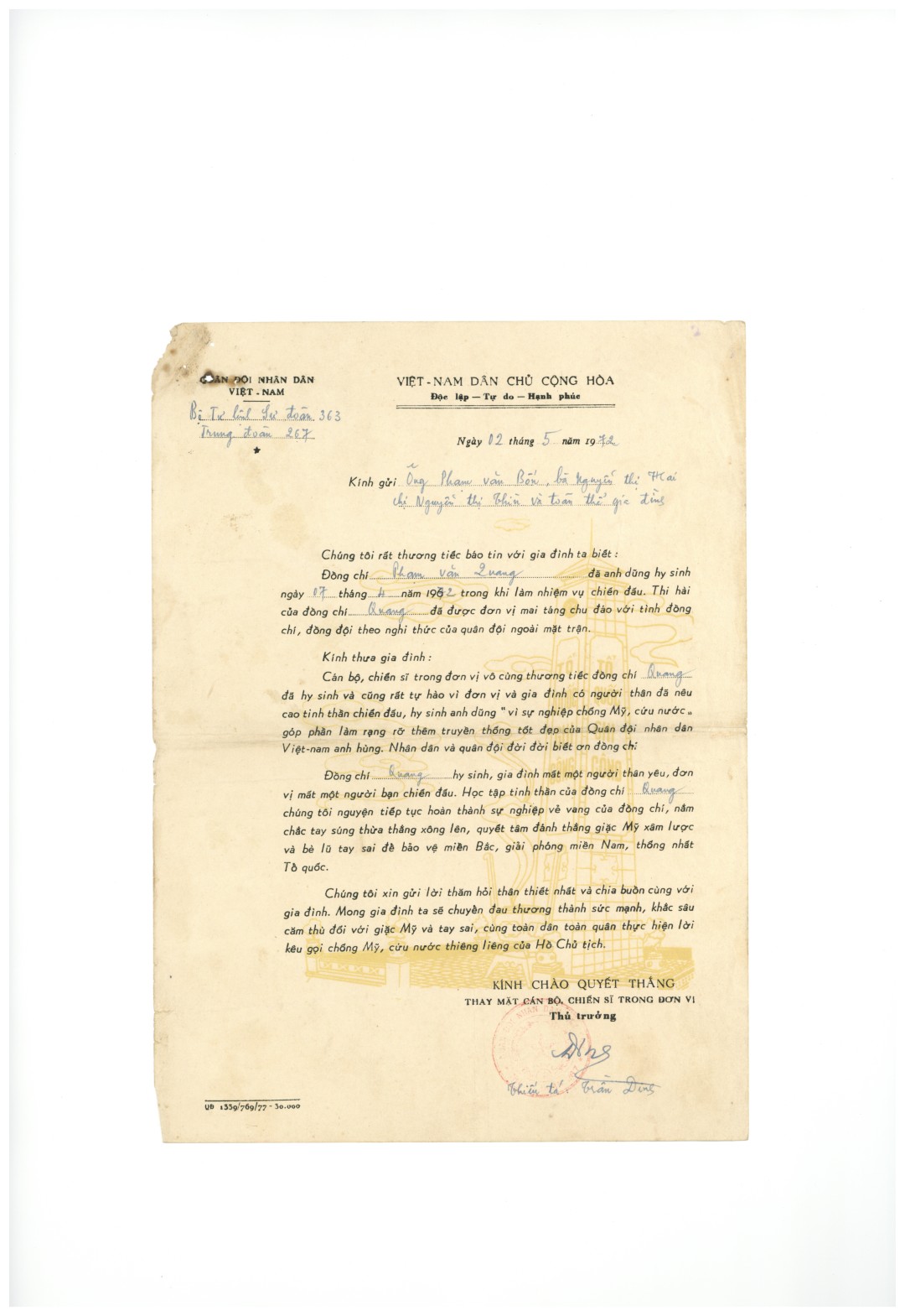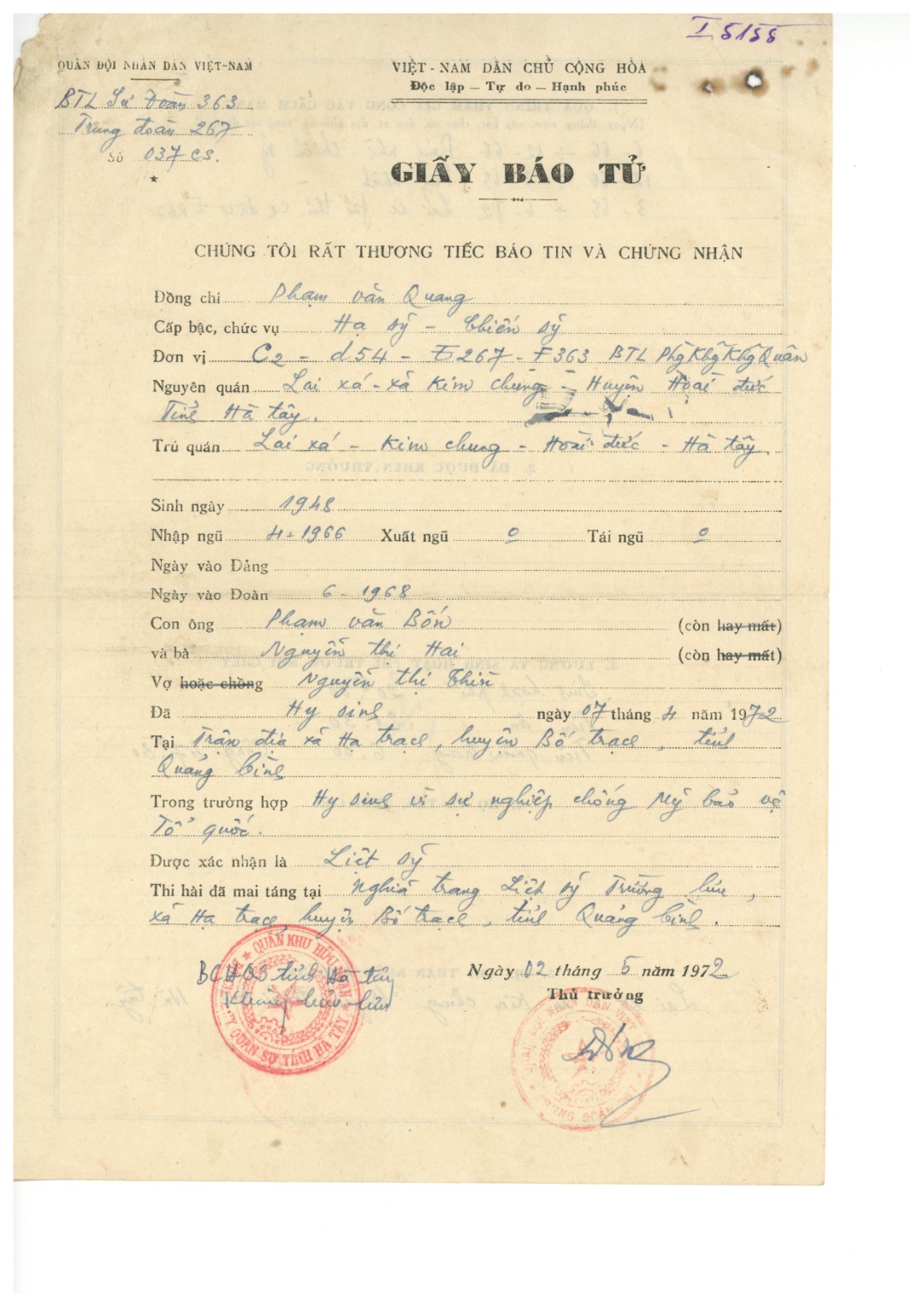 - Họ tên liệt : #27 Phạm Văn Quang