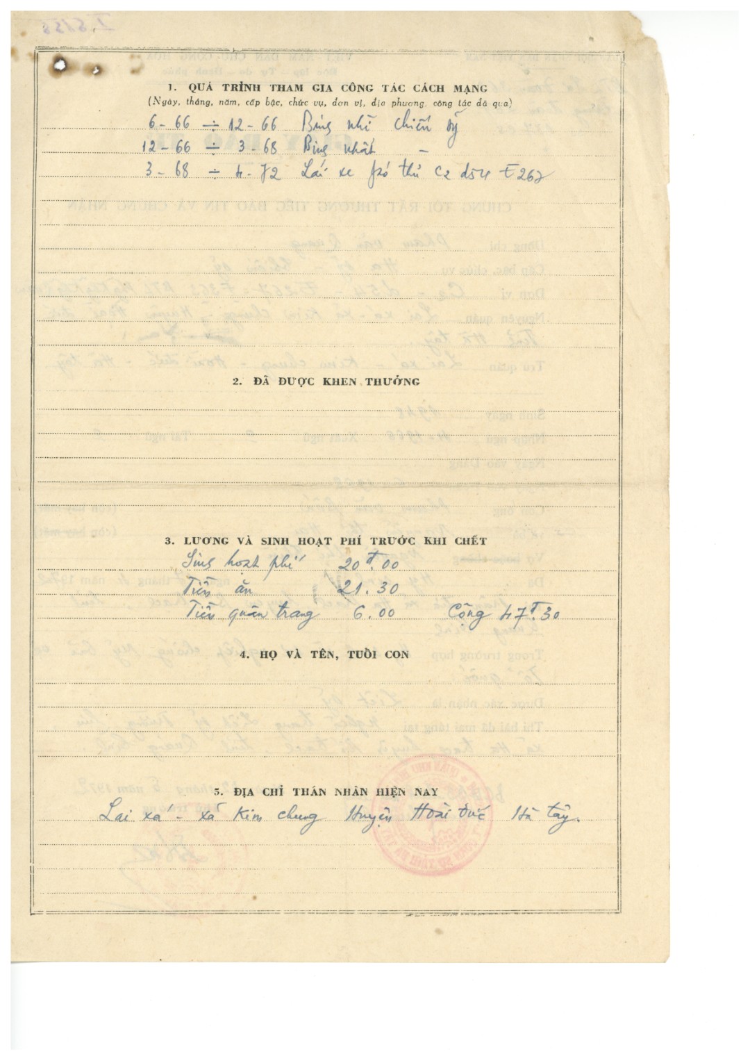 - Địa chỉ gia đình: Thôn Lai , Hoài Đức, thành phố Hà Nội